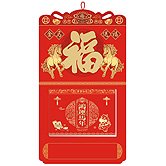 - 特度對開中國紅金雕窗花掛歷